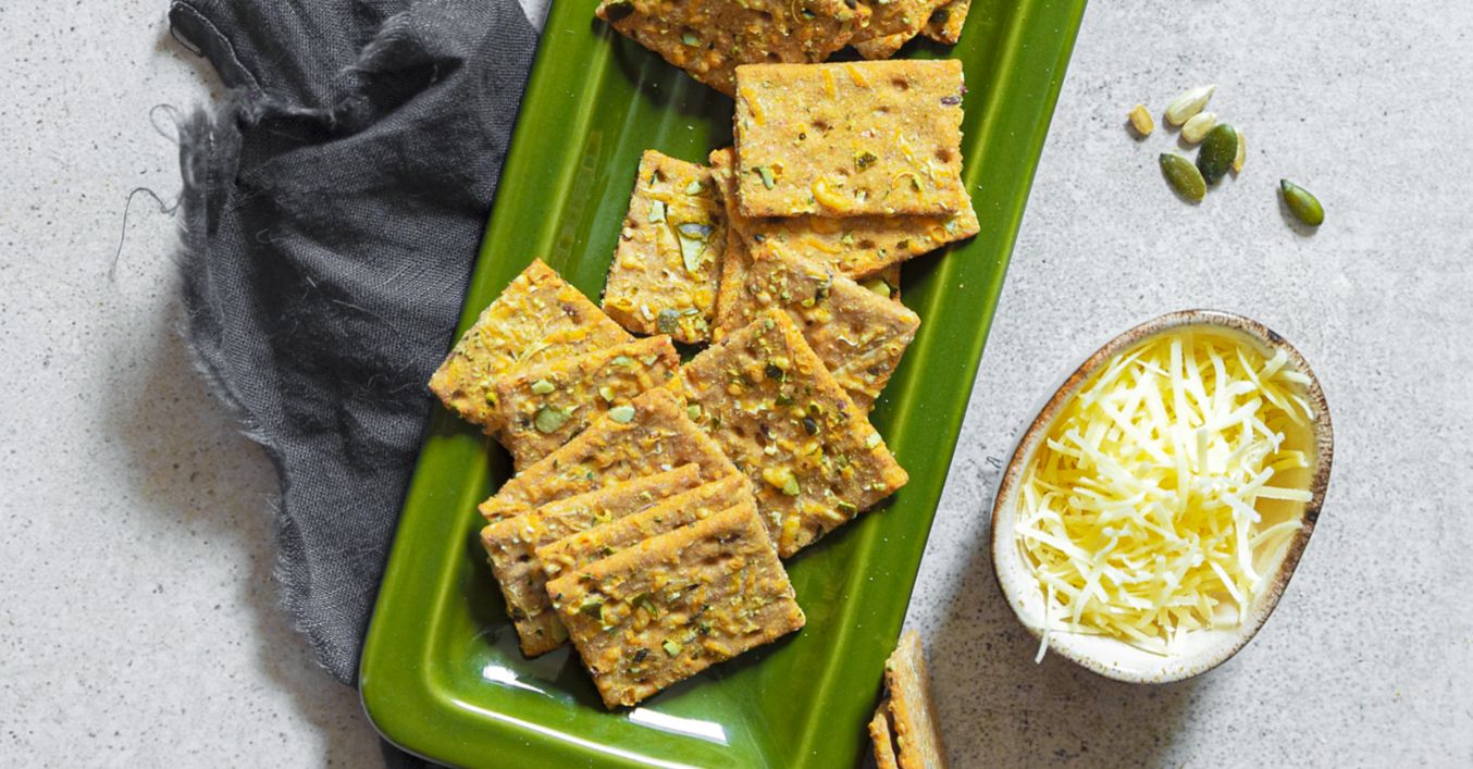Těsto rozválejte na pečícím papíře na placku tenkou 0,5 mm. Přendejte na plech a nakrájejte na obdélníčky. Pečte 10-15 minut do křupava na 180 °C. Pak nechte úplně vychladnout.