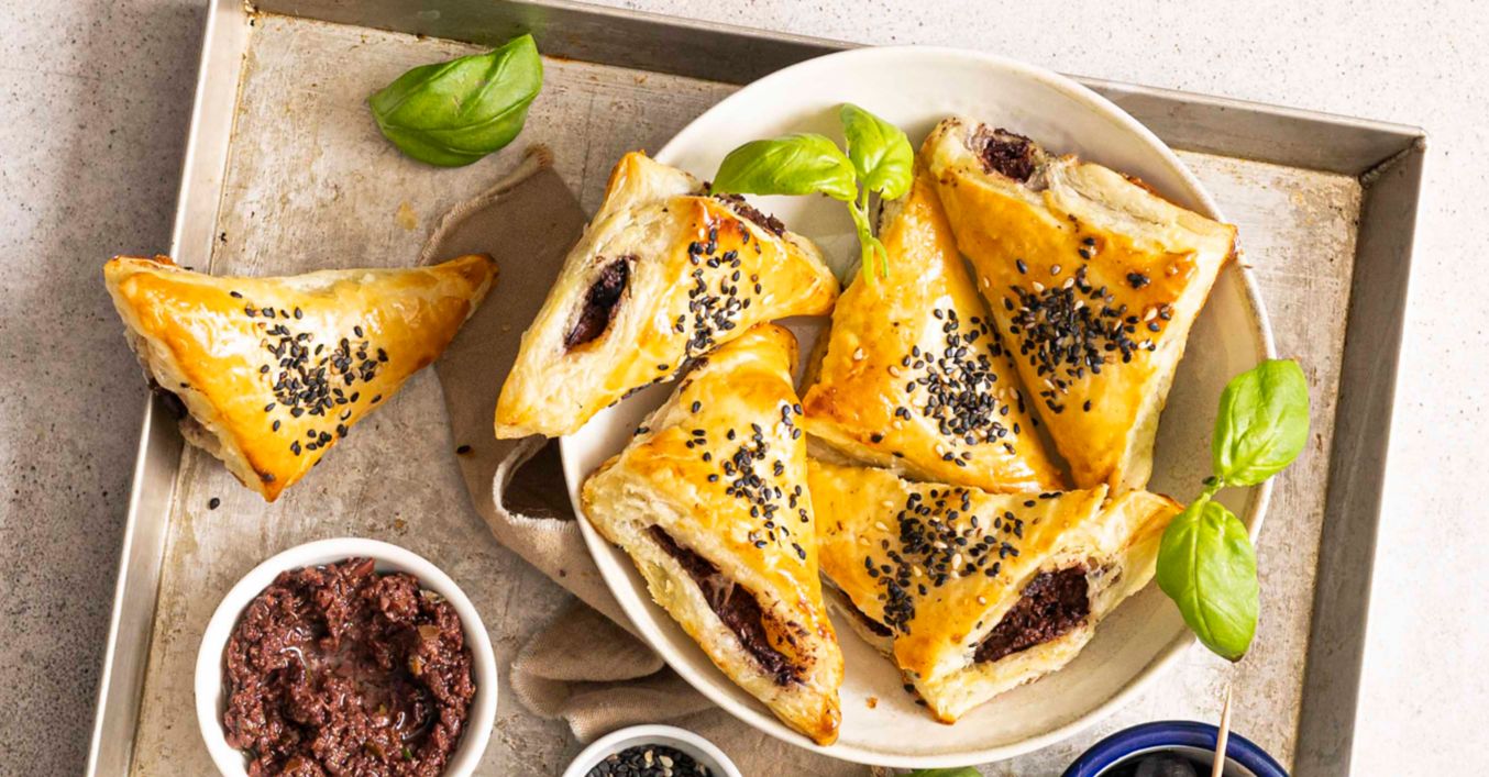 Taštičky z listového těsta s olivovou pastou