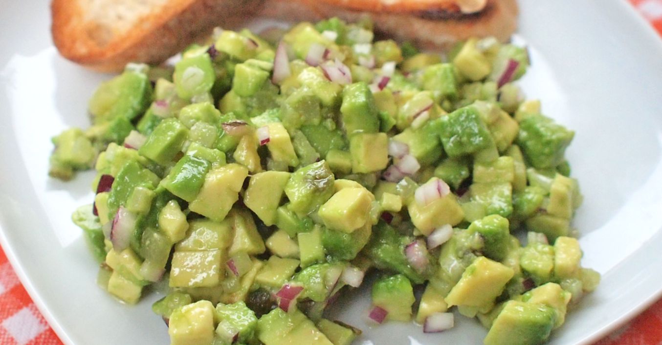 Avokádo zbavíme pecky, oloupeme a nakrájíme na drobné kostičky. Avokádo dáme do mísy spolu s ostatními surovinami a lehce promícháme. Dochutíme solí, pepřem a citronovou šťávou.
