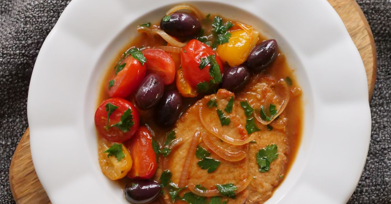Zalijeme vínem, přidáme rajčata, olivy, petrželku a necháme na mírném plameni dusit do změknutí (asi 25 minut).