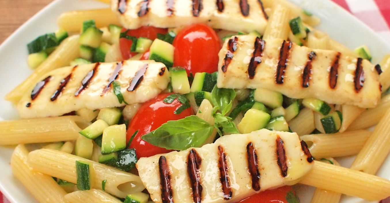 Těstovinový salát s grilovaným sýrem halloumi