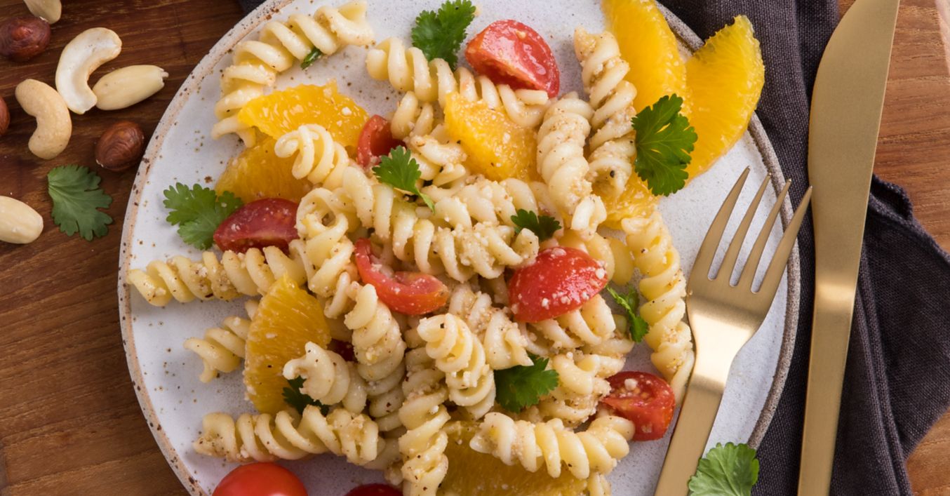 Těstovinový salát s pomerančem a ořechovým pestem