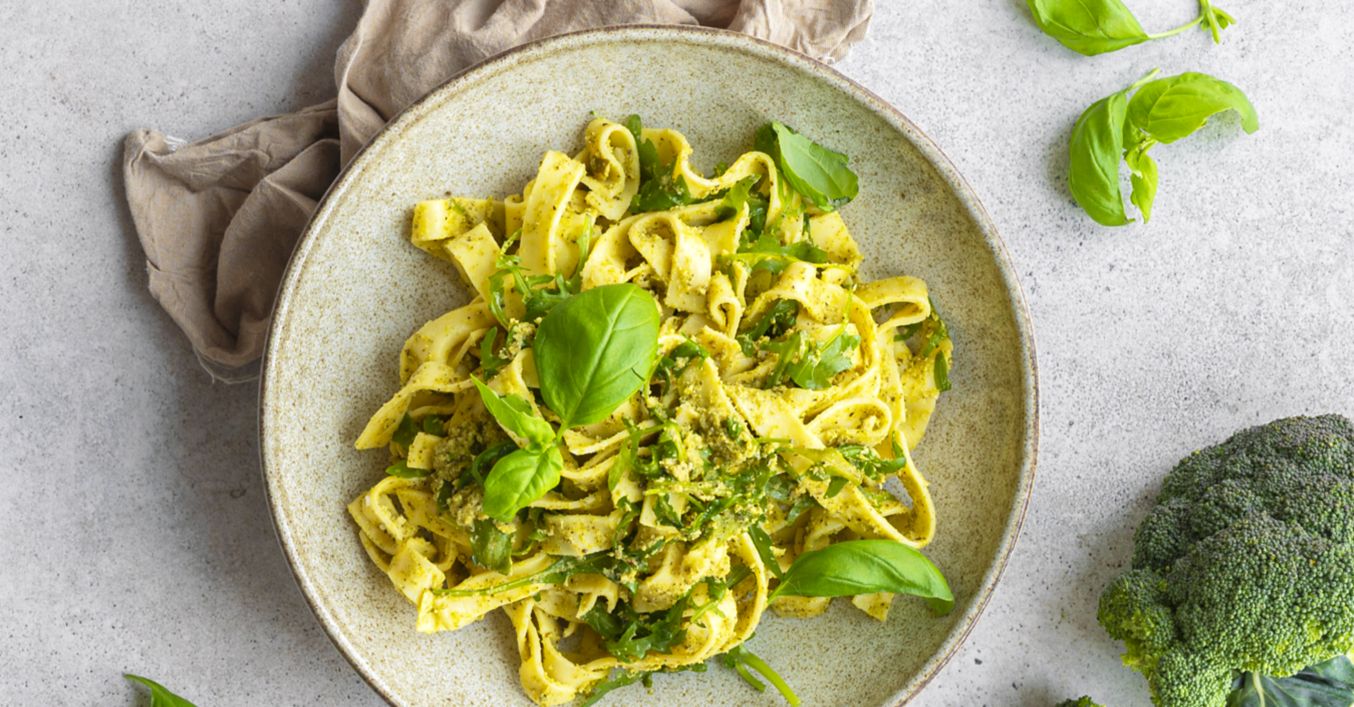 Těstoviny s rukolou a brokolicovou omáčkou