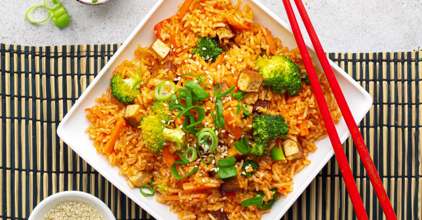 Thajská smažená rýže s marinovaným tofu a zeleninou