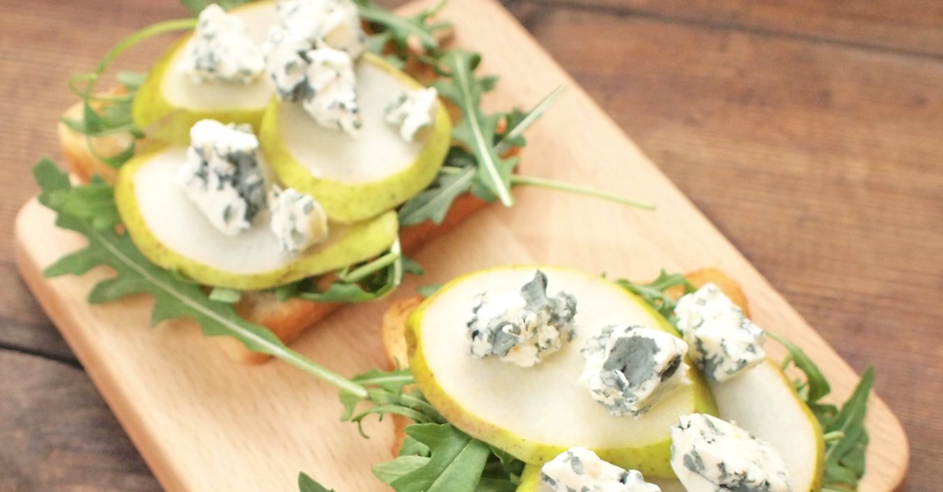 Chléb opečeme v toustovači dozlatova a natřeme jej krémovým sýrem. Poté přidáme rukolu, plátky hrušky, sýr a vlašské ořechy. Ihned podáváme, dokud je chléb křupavý.