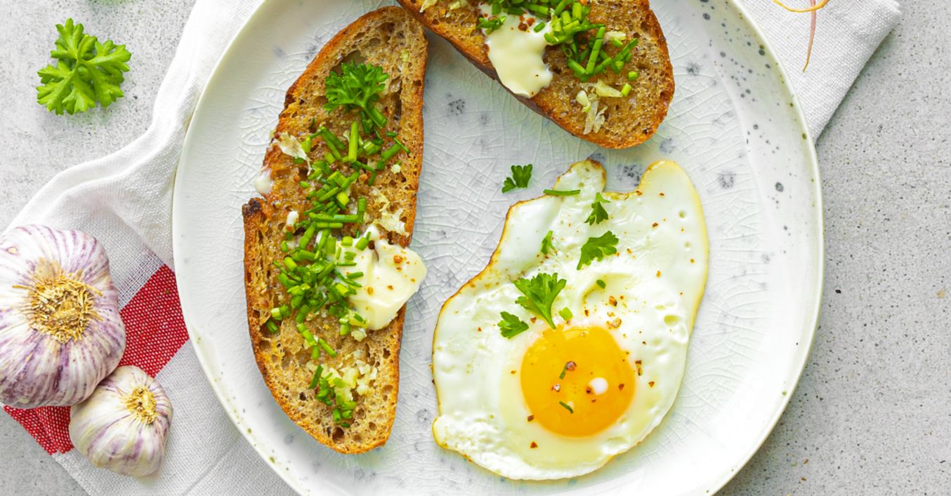 Do pánve rozklepněte vejce. Restujte 3 minuty, pak osolte a opepřete. Podávejte s topinkami a čerstvou petrželkou.