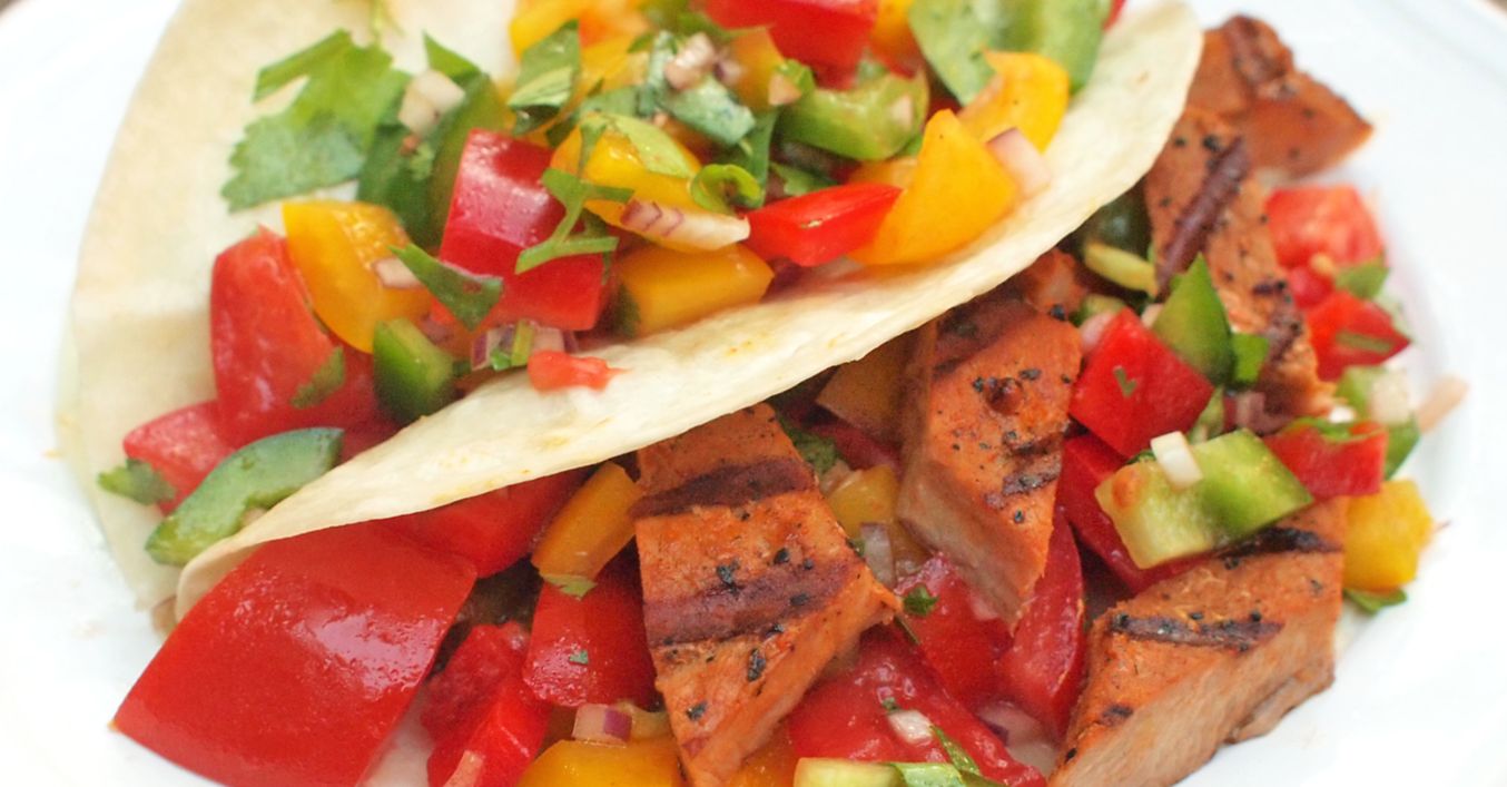 Tortilly s pikantní grilovanou krkovicí