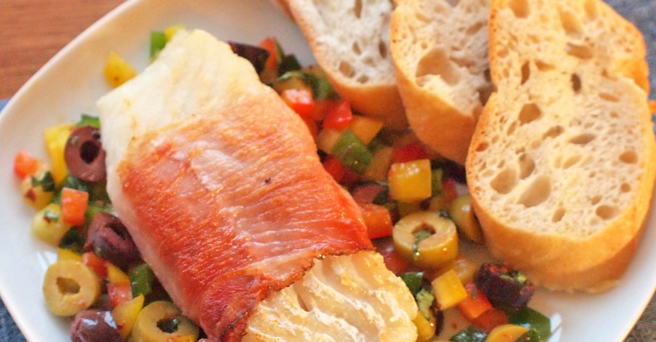 Treska v sušené šunce s chilli olivami
