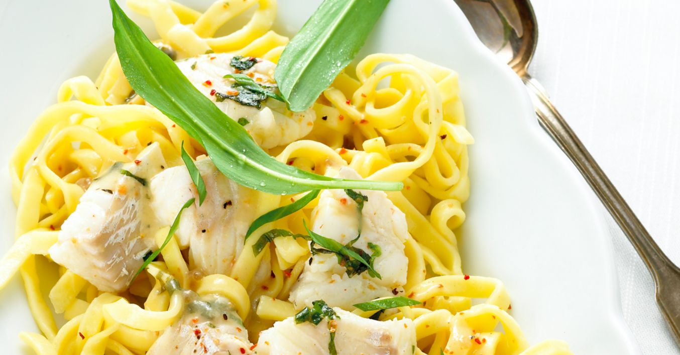 Treska s těstovinami a medvědím česnekem