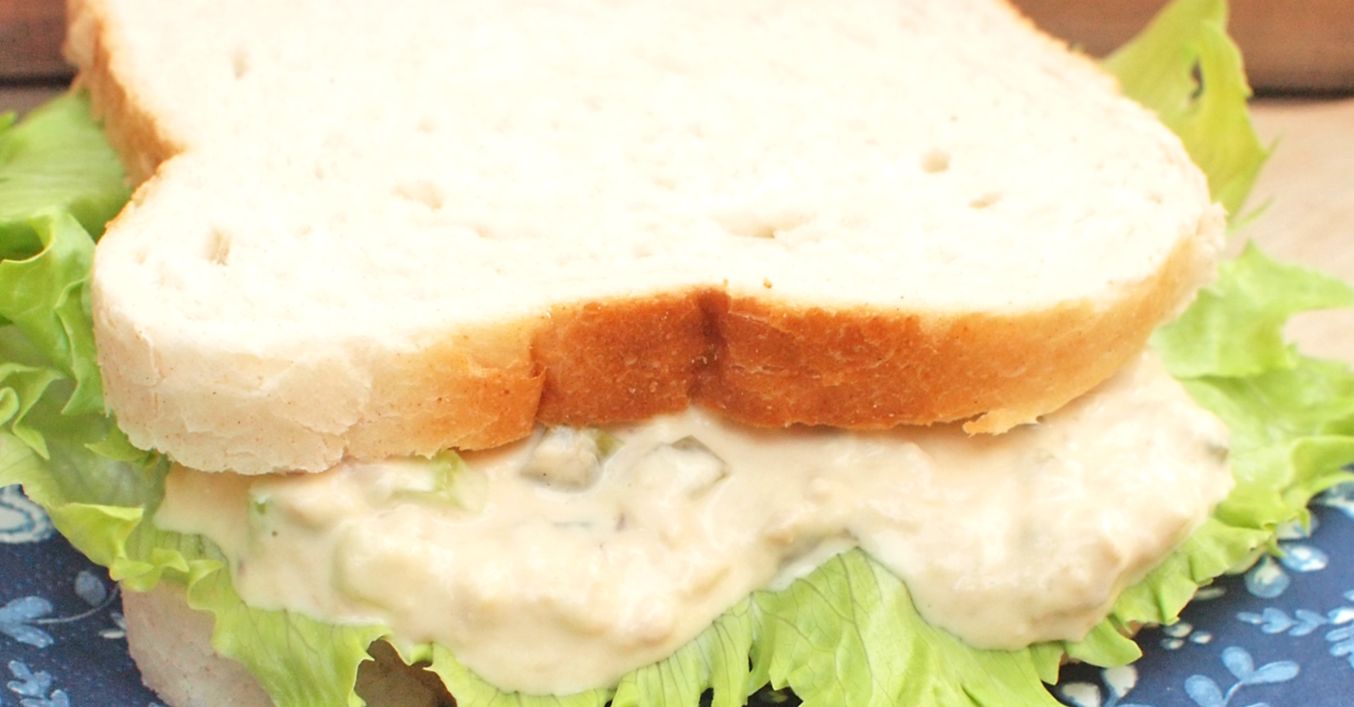 V míse smícháme všechny suroviny na salát a dochutíme solí a pepřem. Na plátek chleba dáme očištěný list ledového salátu, nandáme salát, přiklopíme druhým plátkem chleba a podáváme.