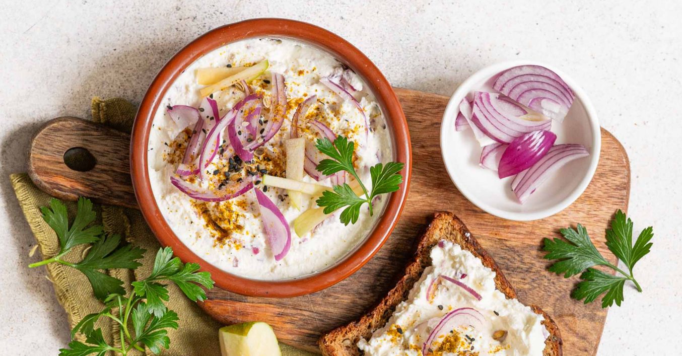Tvarohová pomazánka s jablky a červenou cibulí