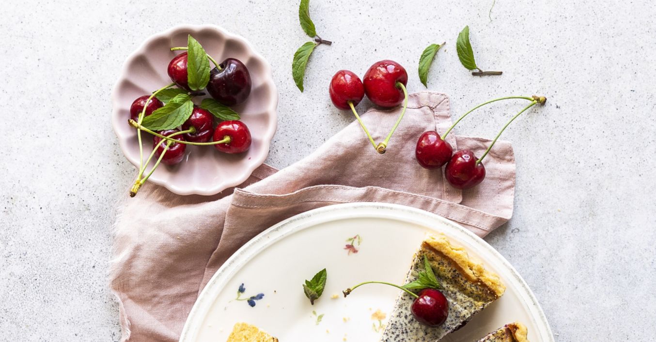 Tvarohový koláč s mákem a třešněmi