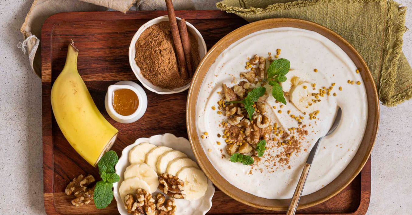 Podávejte s müsli, banánem a čerstvou mátou.