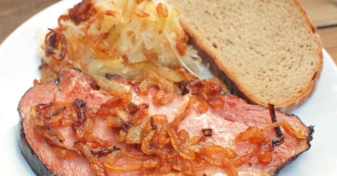 Uzená krkovice na cibulce