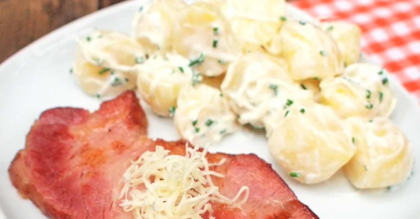 Brambory oloupeme a uvaříme doměkka (asi 20 až 25 minut). Nakrájíme je na kostky a smícháme s nadrobno nasekanou šalotkou, pažitkou, zakysanou smetanou, majonézou a křenem. Dobře promícháme a dochutíme solí a pepřem.