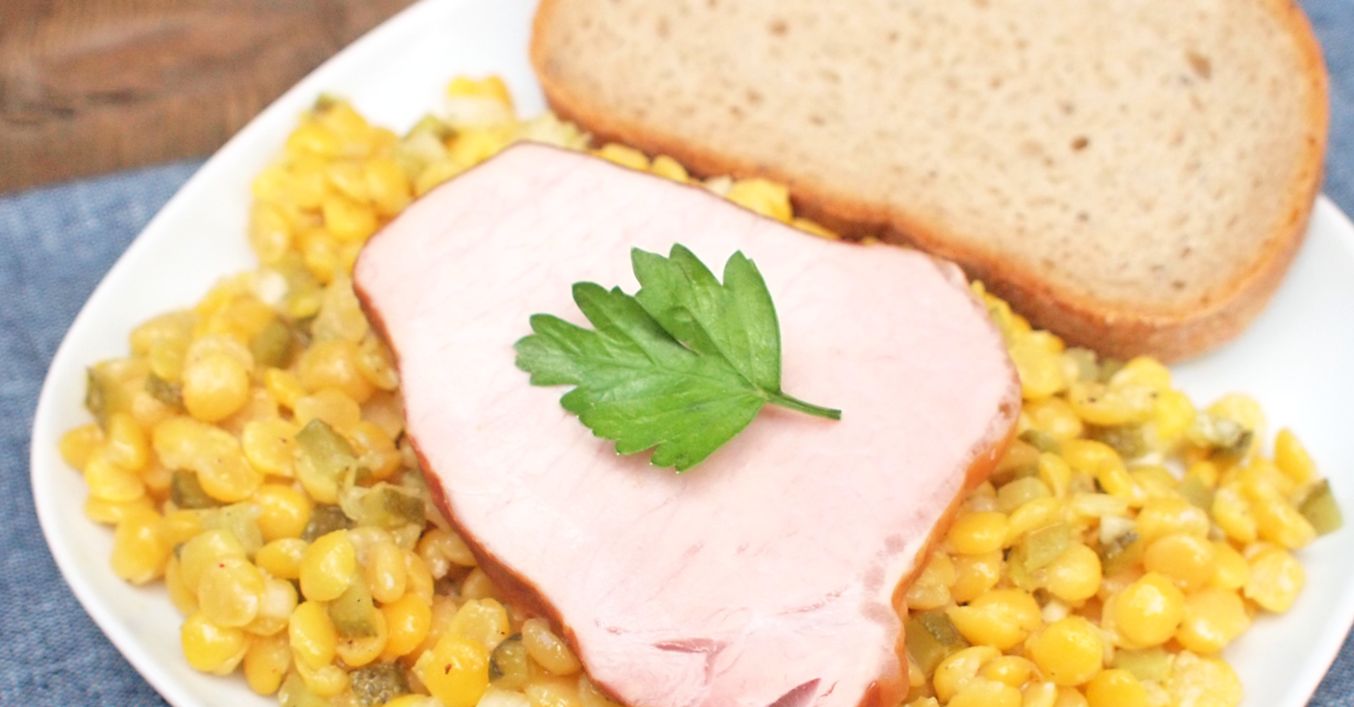 Uzené plátky s hrachovým salátem