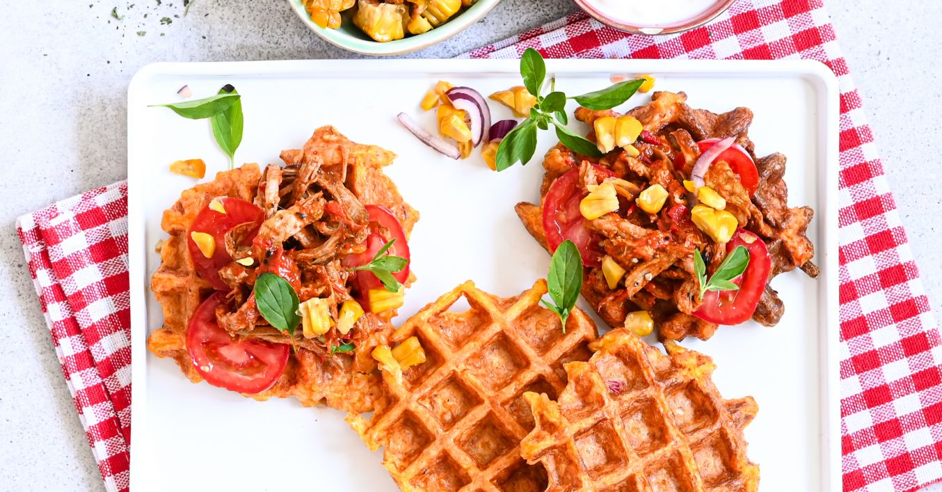 Vafle s trhaným hovězím masem
