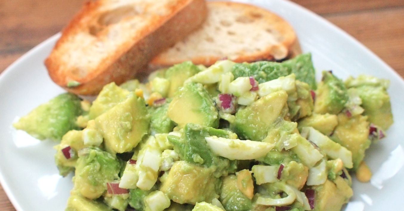 V míse promícháme vejce, avokádo, cibuli, hořčici a olivový olej. Dochutíme solí, pepřem a trochou limetkové šťávy.