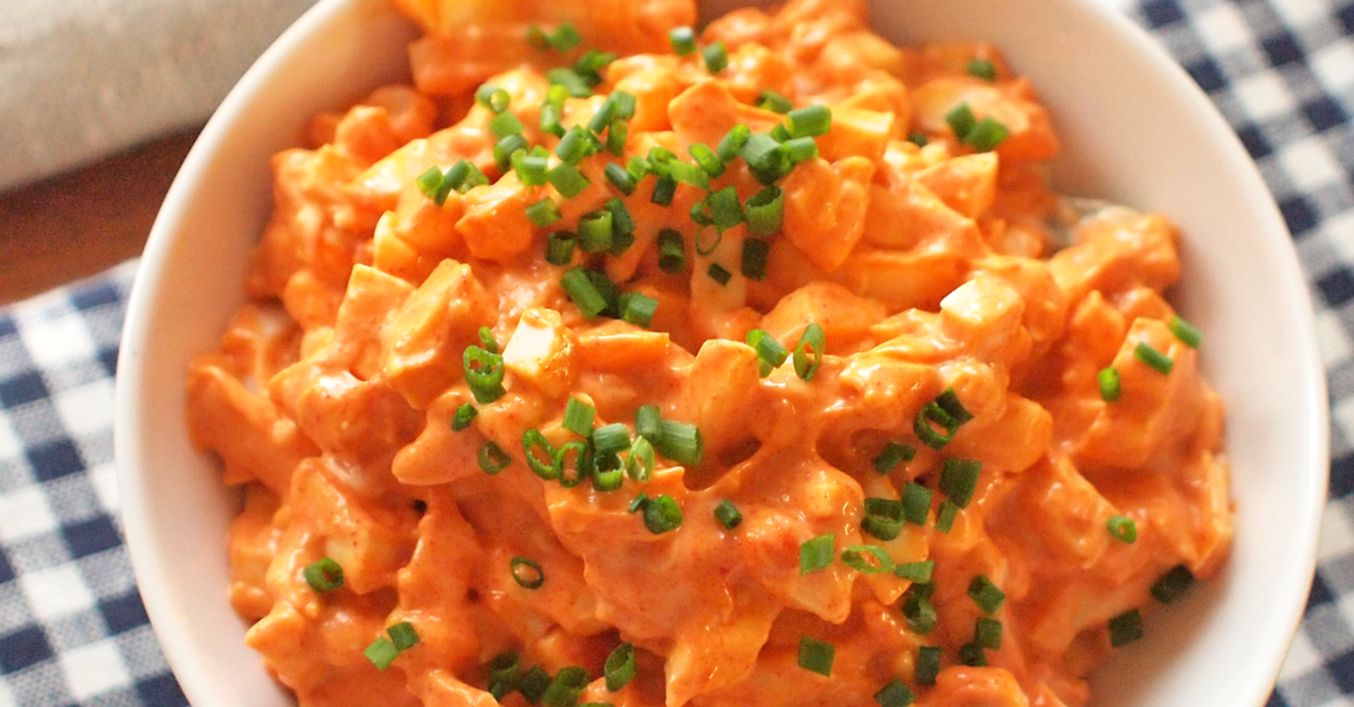 V míse promícháme vejce, majonézu, šalotku, česnek, kápii, okurku a uzenou papriku. Promícháme a mírně dochutíme solí, pepřem a trochou vinného octa. Před podáváním necháme odležet v lednici.