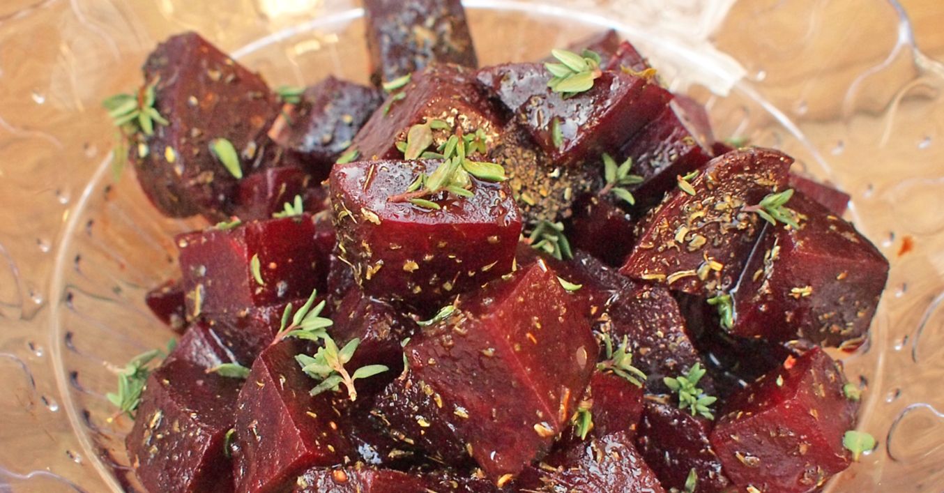 Olej smícháme s aceto balsamico. Přidáme bylinky, med a dochutíme solí a pepřem. Plátky řepy dáme do mísy, zakápneme zálivkou a promícháme. Zakryjeme a necháme alespoň 2 hodiny marinovat v lednici.