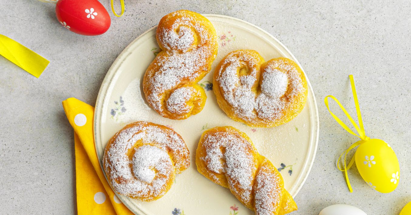 Z těsta odkrajujte malé kousky a z nich udělejte tenké válečky přibližně 15-20 cm dlouhé. Stočte do spirály, zauzlujte nebo vytvořte tvar esíčka. Dejte na plech vyložený pečicím papírem, zakryjte utěrkou a nechte kynout dalších 30 minut.