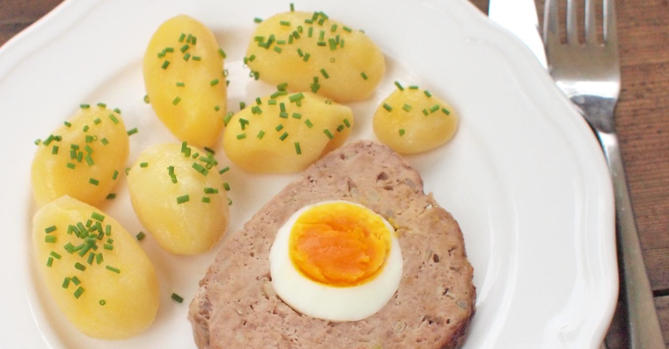 Polovinu směsi na sekanou vytvarujeme do tvaru podélného bochánku a do dna zatlačíme 4 vejce za sebou. Přiklopíme druhou polovinou směsi, po stranách spojíme a vytvoříme oválnou šišku, kterou dáme do pekáčku.