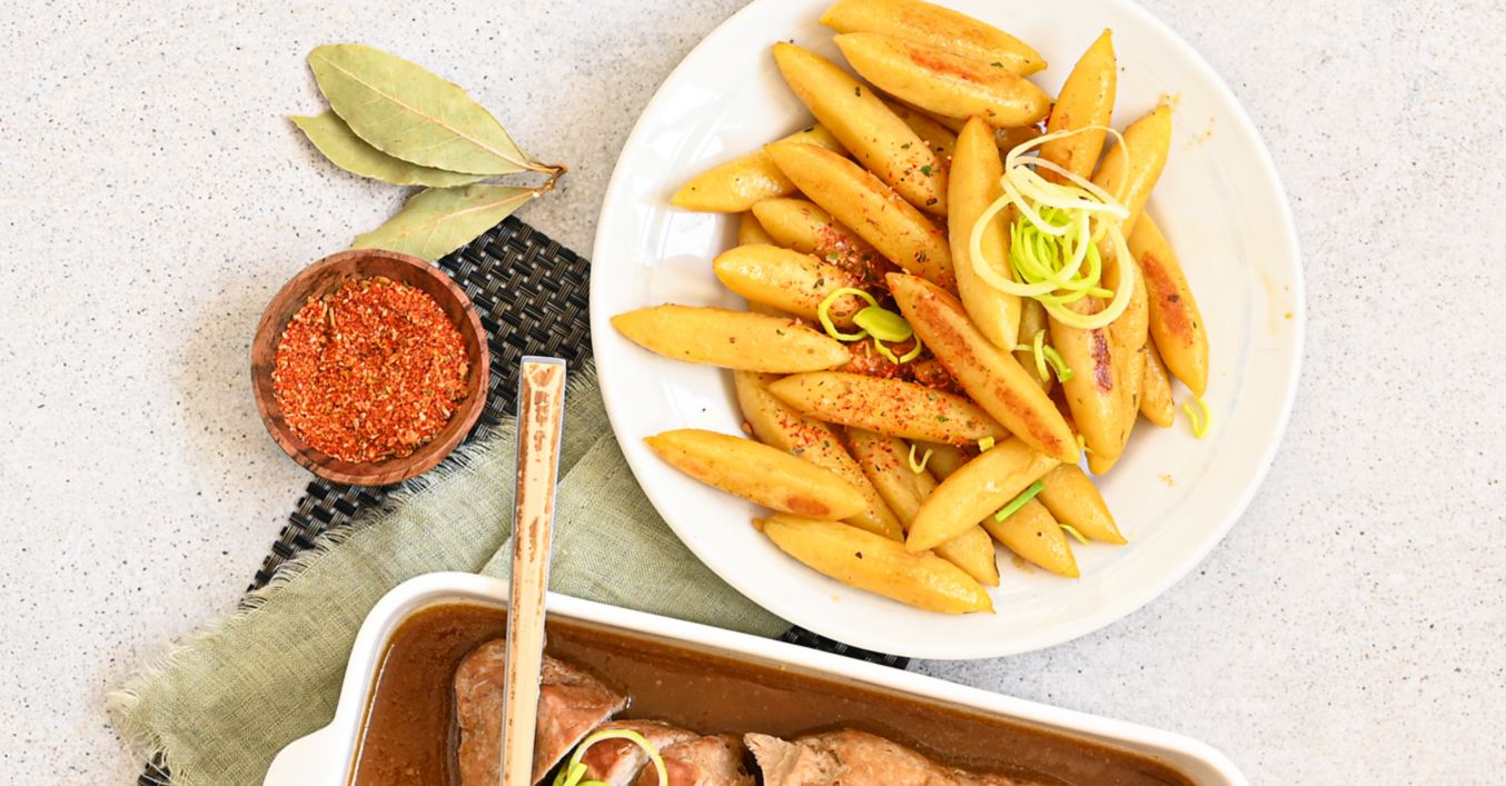Do omáčky vložte zpět maso, přiklopte poklicí a na mírném stupni duste 30 minut.