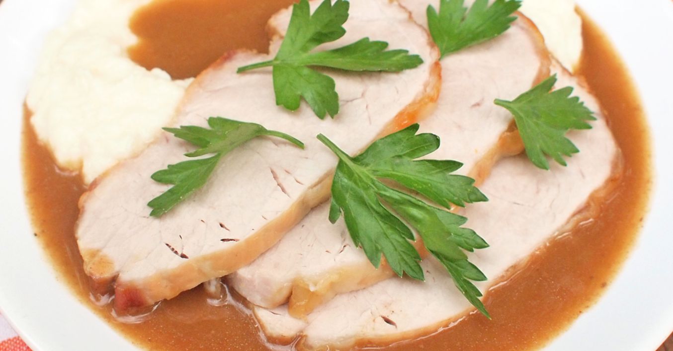 Když je pečeně upečená, dáme ji stranou a zakryjeme. Pekáč přeneseme na sporák a výpek svaříme na tuk. Zaprášíme moukou, krátce zasmahneme a zalijeme vývarem. Povaříme asi 10 minut a pak podáváme spolu s pečení nařezanou na plátky a s celerovým pyré.