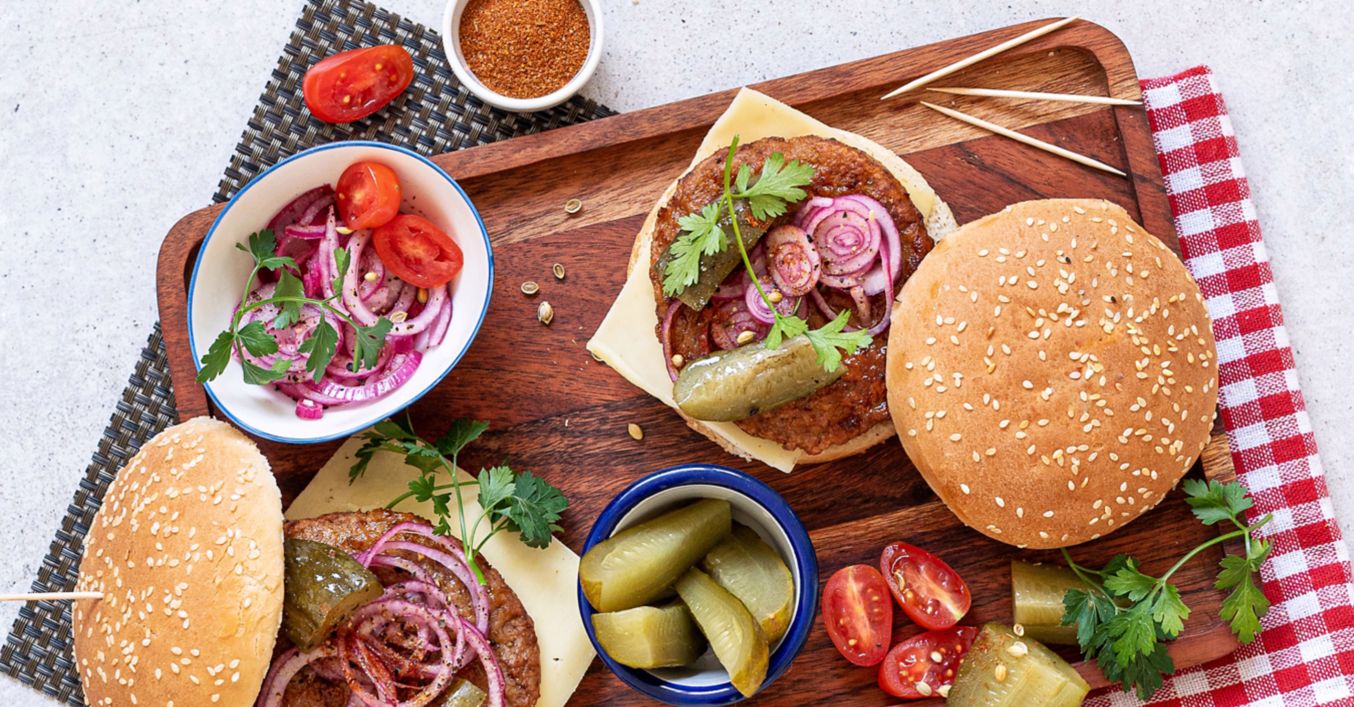 Připravte burgery. Promíchejte mleté maso s mletou paprikou, oreganem a nastrouhaným sýrem. Osolte a opepřete.
