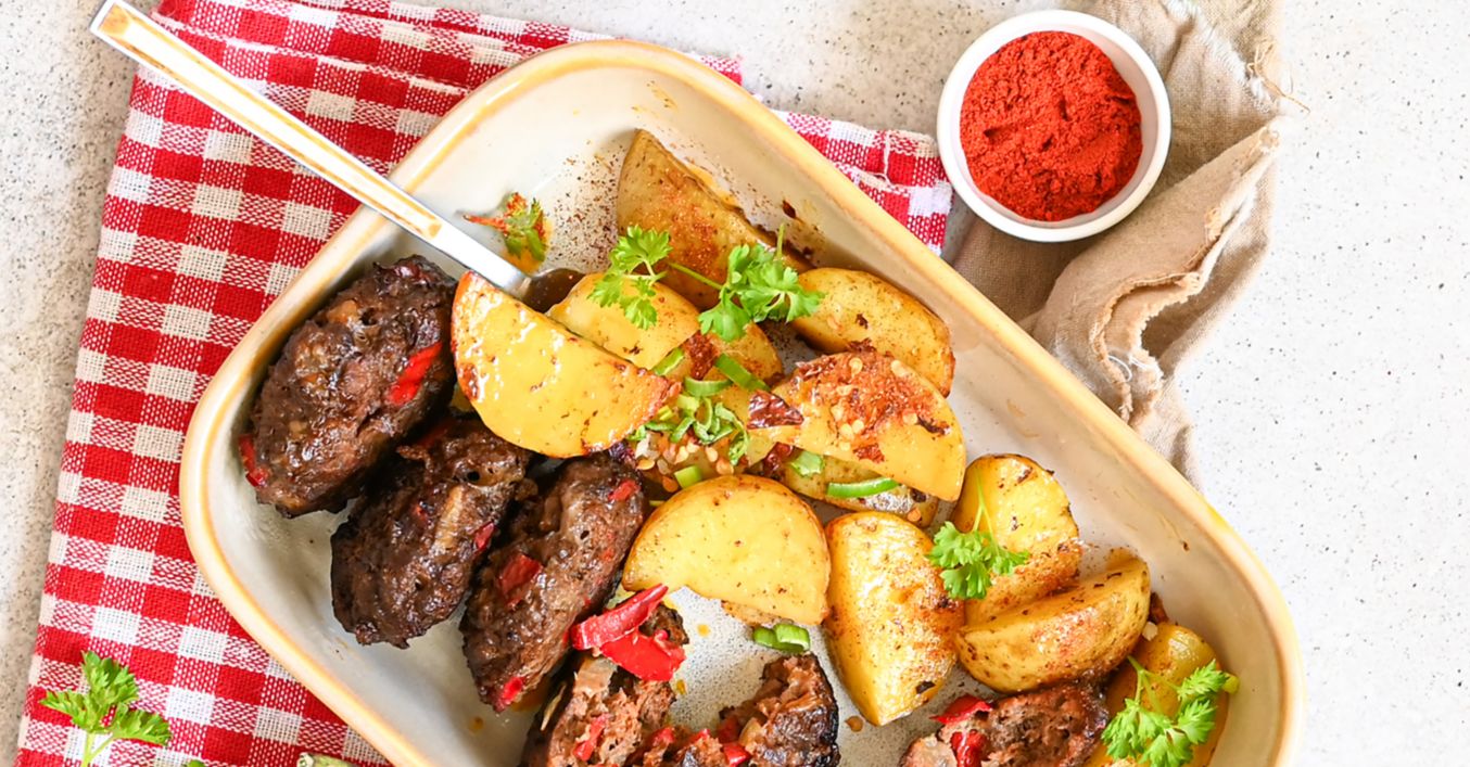 Vepřové maso promíchejte s kmínem, prolisovaným česnekem, nakrájenou cibulí, paprikou, solí, pepřem, sladkou paprikou, strouhankou, vejcem a worcesterovou omáčkou.
