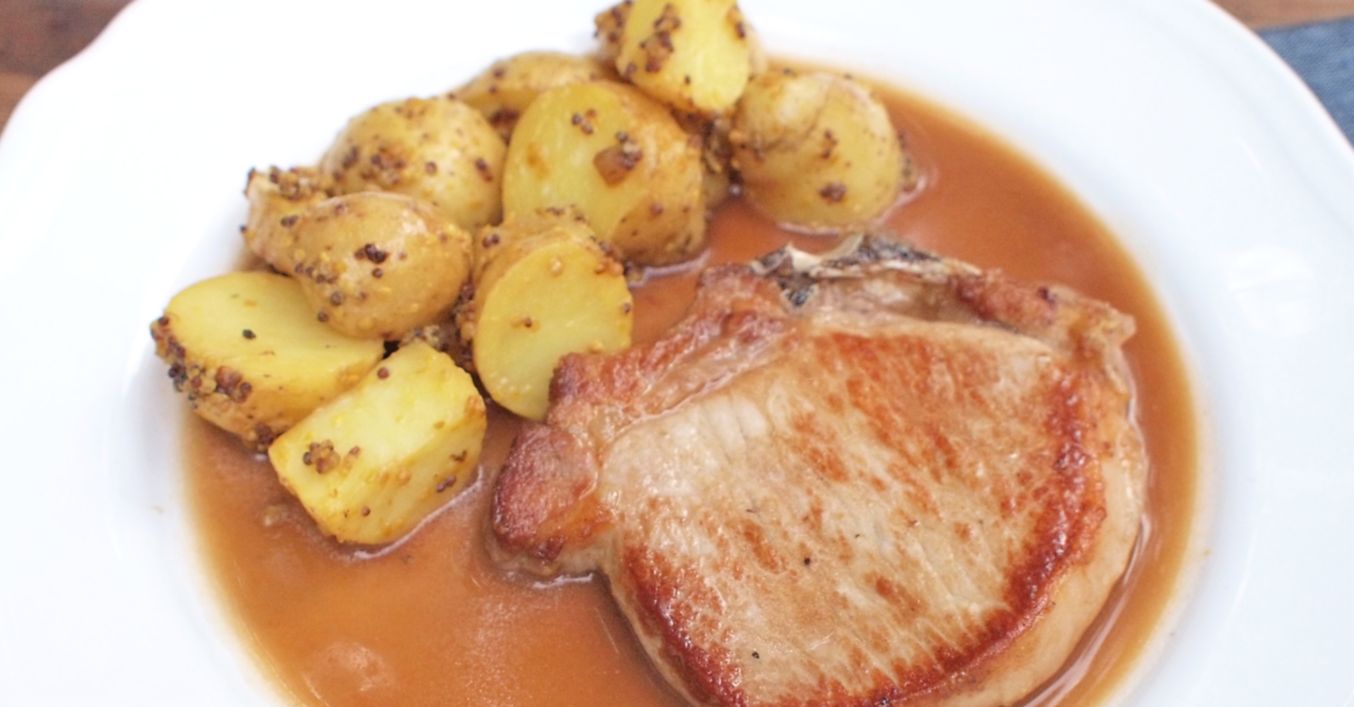 Hotovou cibuli zaprášíme moukou, promícháme a zalijeme vývarem. Přidáme kotletky a společně dusíme 30 až 45 minut doměkka.