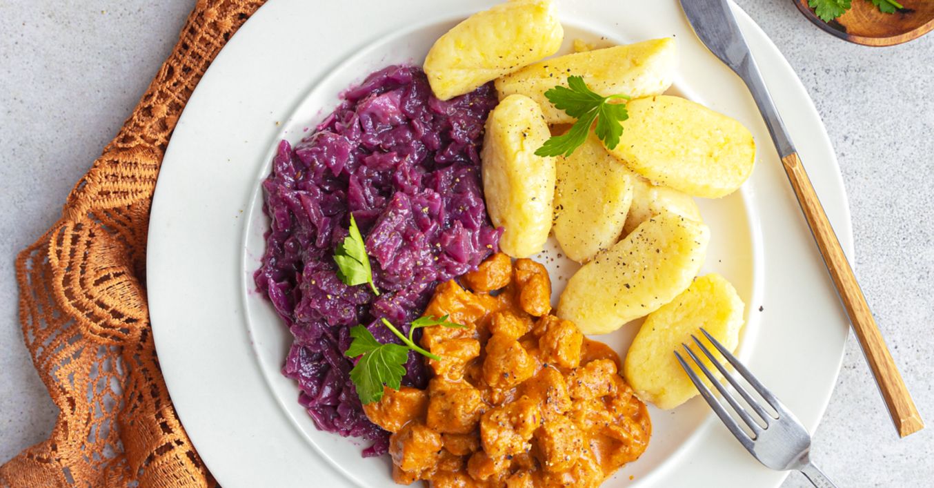 Vepřové maso na paprice se zelím a bramborovými šiškami