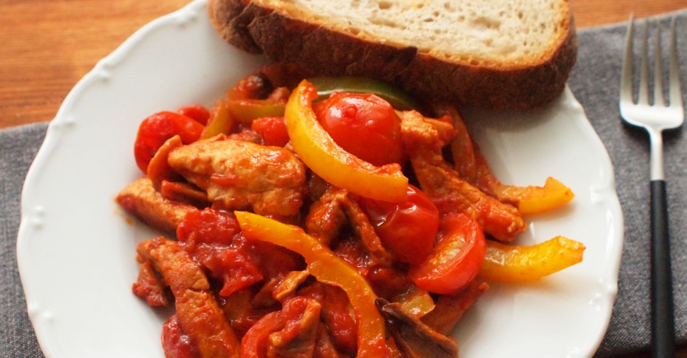 Přidáme papriky, rajčata, mletou sladkou papriku a trochu vody. Na mírném plameni podusíme do změknutí (asi 20 až 30 minut).