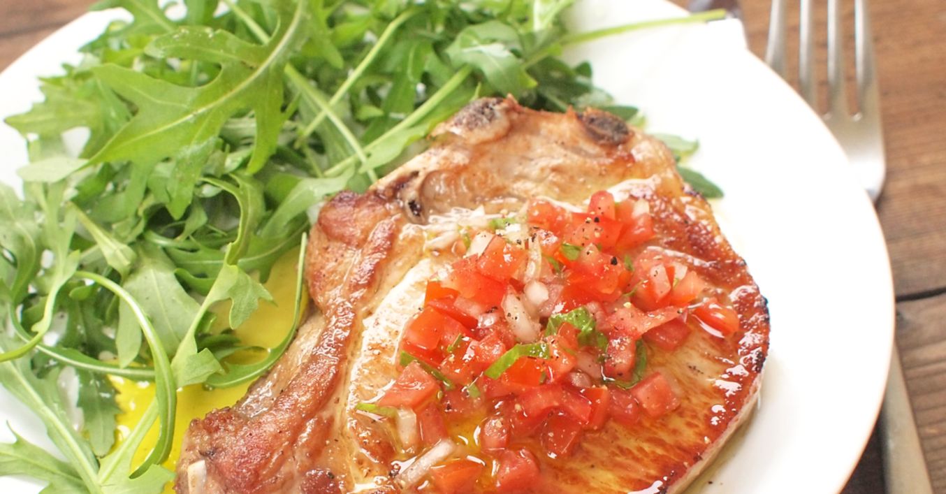 Vepřové kotlety nebo krkovici očistíme a lehce naklepeme dlaní. Osolíme a opepříme. Rajče, šalotku a feferonku očistíme a nakrájíme na drobné kostičky.