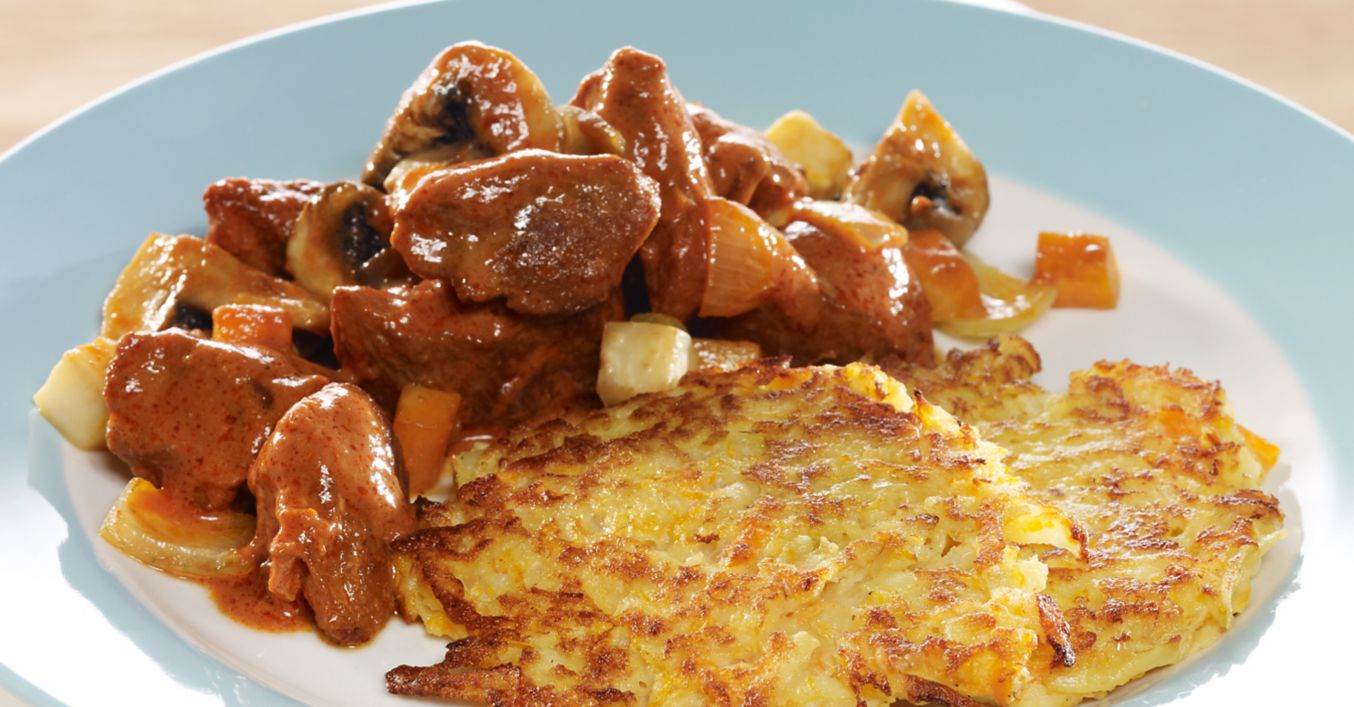 Hotový guláš zjemníme smetanou, naposledy ochutnáme a doladíme dochucení. Podáváme s bramboráky.