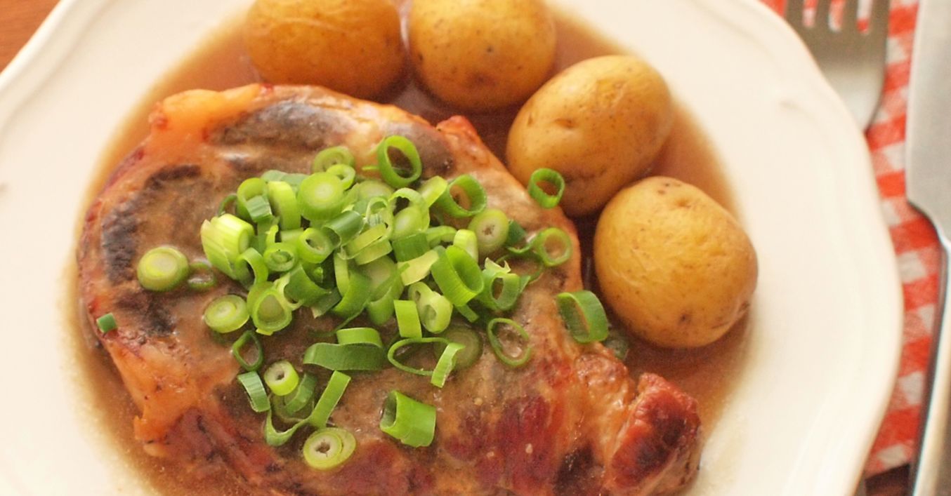 Ke konci teplotu zvýšíme a krkovici zprudka zapečeme. Maso dáme stranou, šťávu přecedíme a svaříme do husté konzistence.