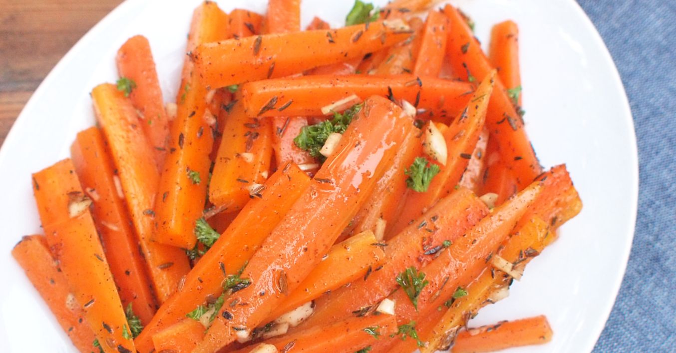 Mrkev oloupeme a nakrájíme na silnější hranolky, které uvaříme doměkka v osolené vodě. Česnek oloupeme, podrtíme a nasekáme nadrobno. Římský kmín nasucho opražíme na pánvi.