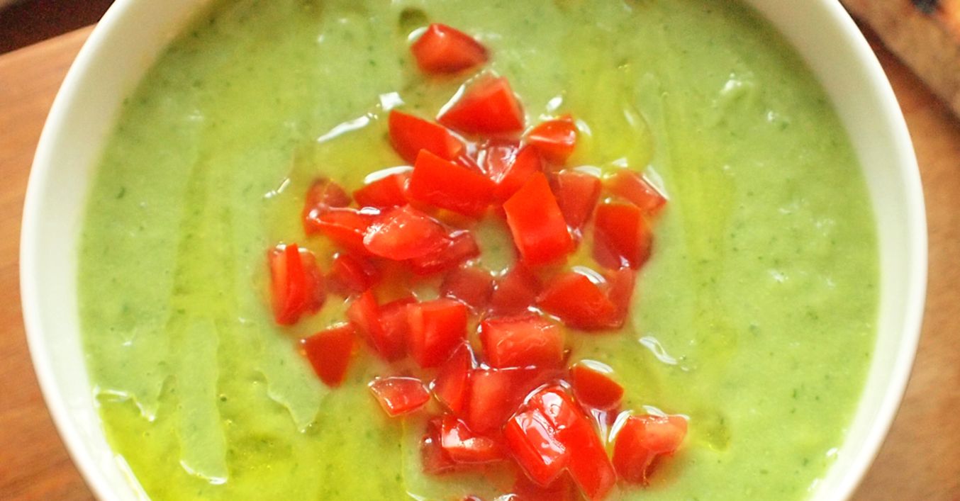 Do mixéru dáme nakrájenou okurku, avokádo, česnek, podmáslí, olivový olej a bylinky. Rozmixujeme dohladka a podle potřeby naředíme trochou ledové vody.