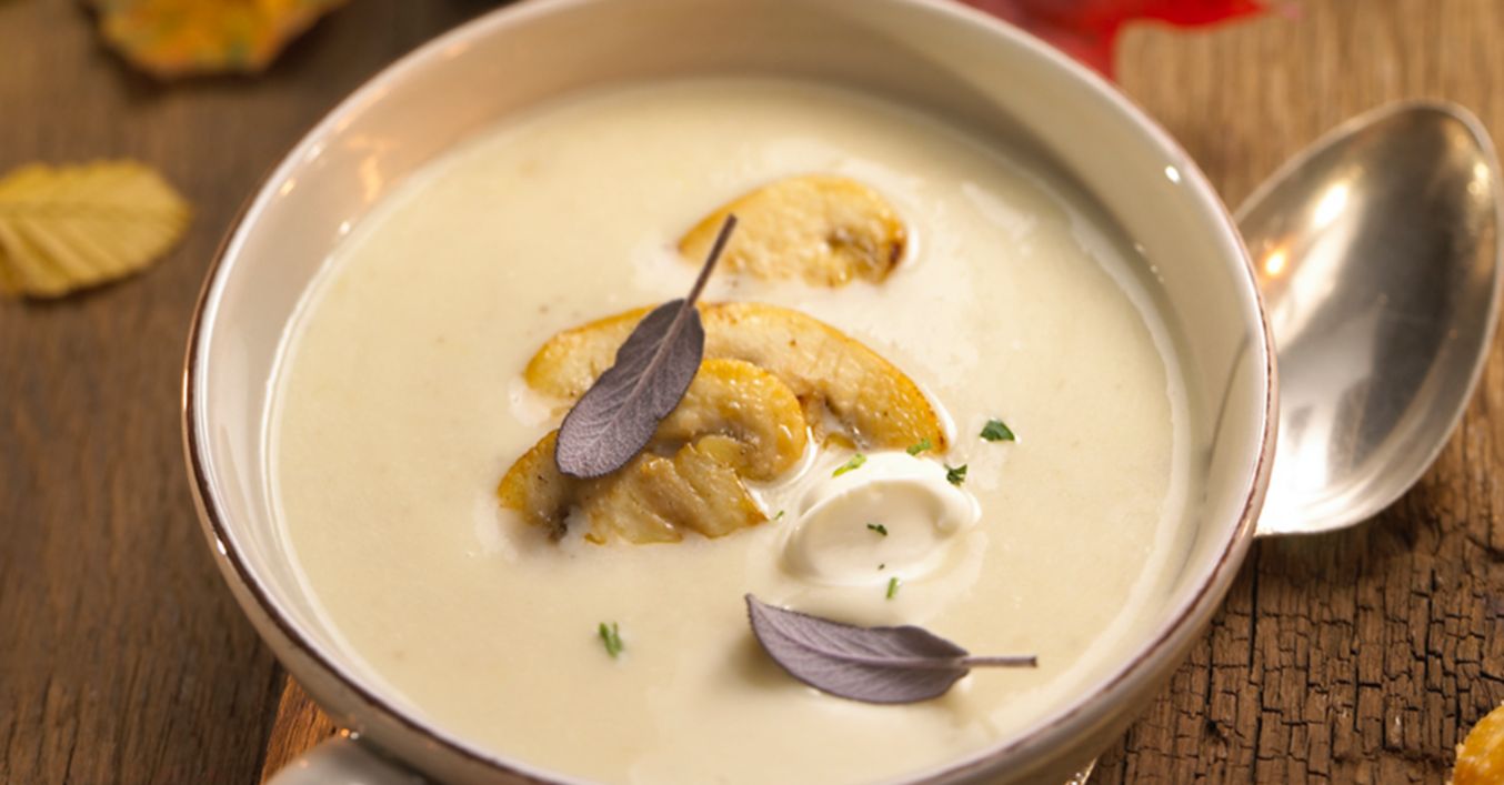 Polévku odstavíme, vmícháme smetanu a nadrobno nasekanou šalvěj. Rozmixujeme dohladka a ihned podáváme.
