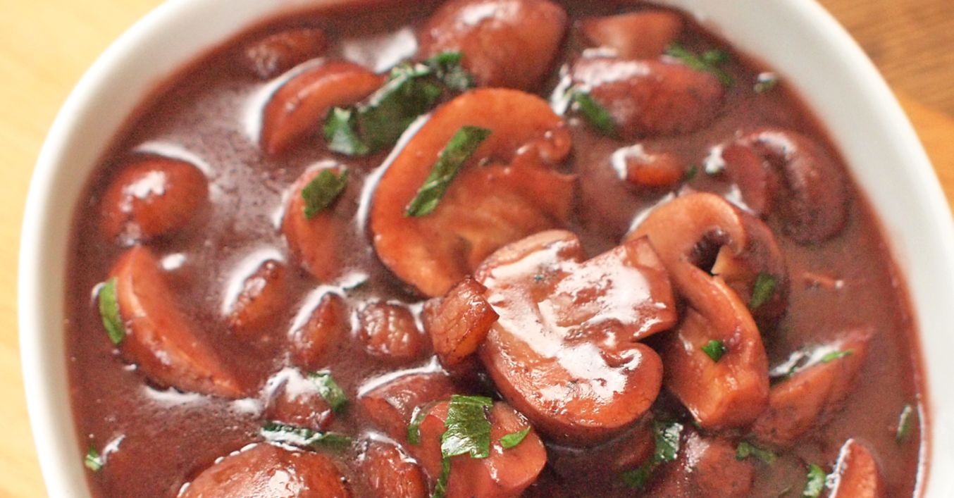 Přidáme lžící másla, zaprášíme moukou a orestujeme na světle hnědou jíšku. Vmícháme protlak, vývar s vínem a přivedeme k mírnému varu. Povaříme alespoň 10 minut, vmícháme houby, nasekanou petrželku a podáváme.