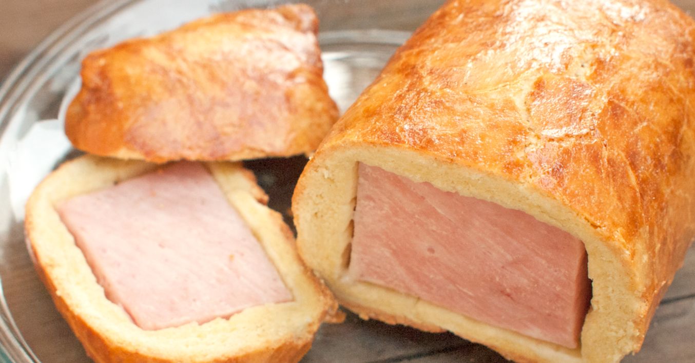 Jakmile je trouba rozehřátá, přendáme těsto s uzeným masem na plech a pomažeme jej vejcem s pomocí mašlovačky. Vložíme do trouby a pečeme 35 až 45 minut, dokud není těsto upečené krásně dozlatova.