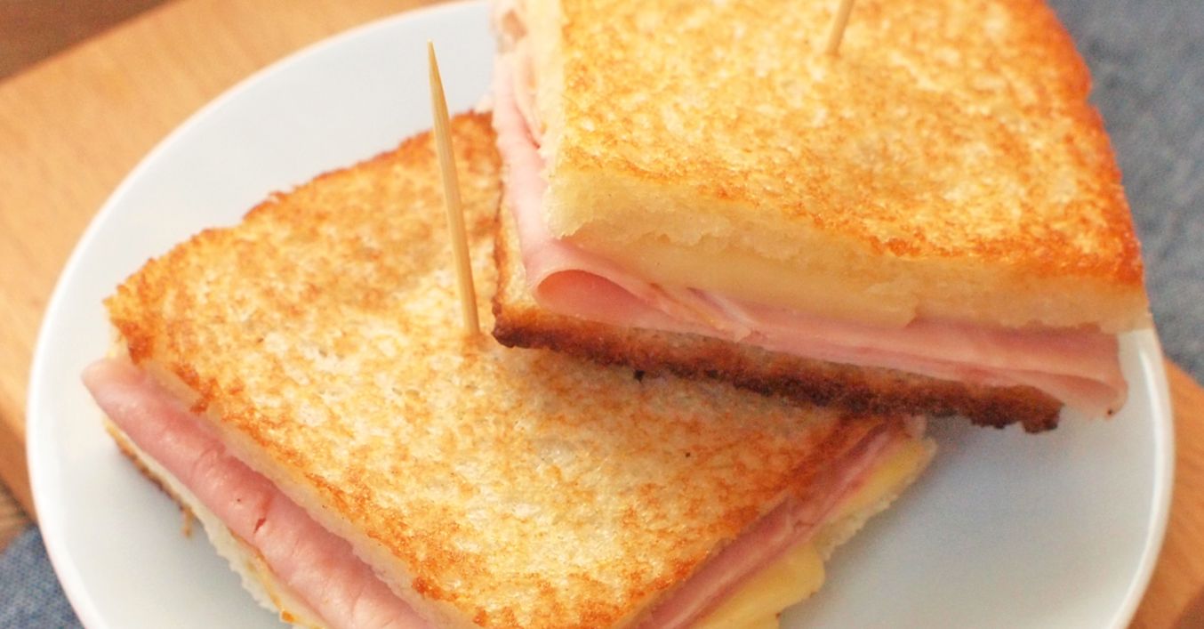 Plátky toastového chleba zbavíme kůrky. Sýr nakrájíme na tenké plátky a rovnoměrně rozložíme na chléb. To samé uděláme se šunkou, podle potřeby přeložíme nebo nakrájíme, aby šunka nepřesahovala chléb, a přiklopíme druhým plátkem.
