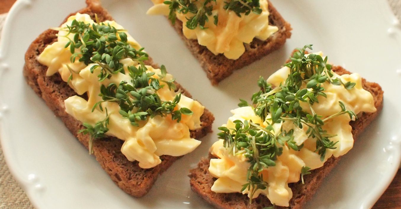 Žitný chléb s vajíčkovým salátem a řeřichou